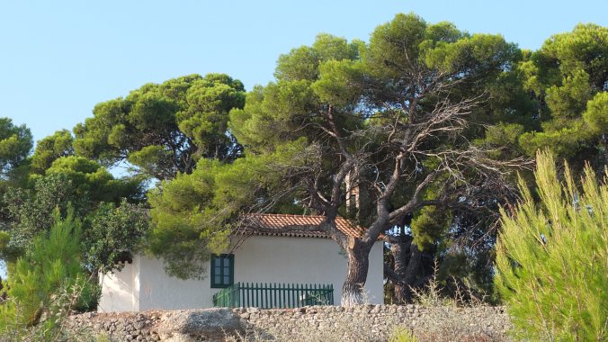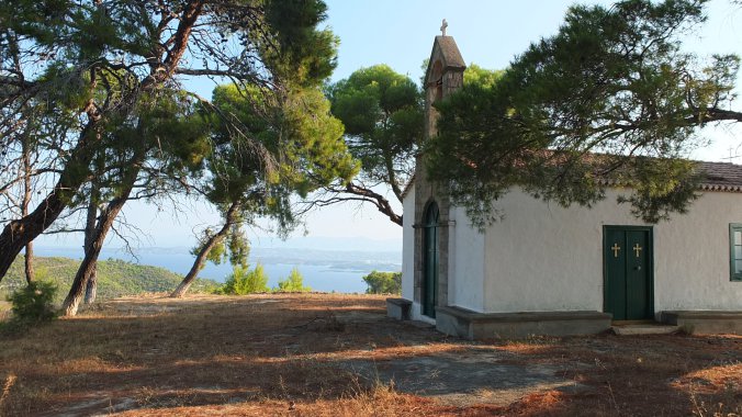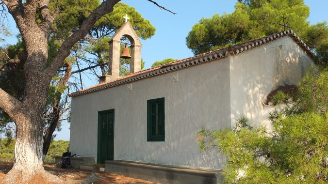 The property belonged to the Greek industrialist, Dimitris Daskalakis. The church is kept in excellent condition and painted every year before an annual festival.